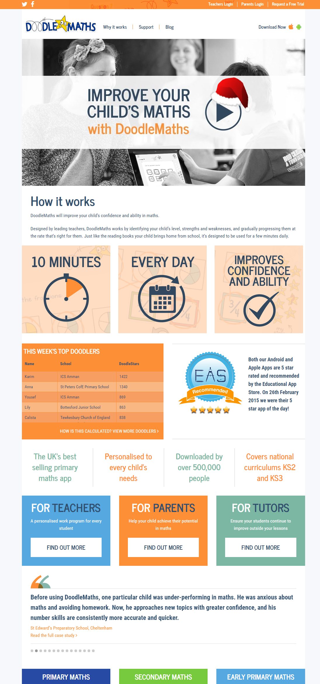 Founded in 2012 by two experienced classroom teachers and educators, EZ Education create educational apps aimed to enhance children’s learning through personalised, adaptive learning programs. Their first product – DoodleMaths Primary- is the top-selling maths app for primary-aged children in the UK, and with the launch of DoodleMaths Secondary and soon-to-be available DoodleMaths Early Primary, they provide support for the entire maths curriculum up to GCSE. Their insights as to how children learn as individuals are the basis on which EZ Education’s apps are built.
